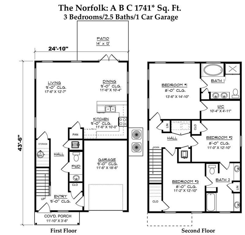The Norfolk floor plan features an inviting open-concept layout downstairs, blending the kitchen, dining area, and family room into one comfortable living space, along with a convenient half-bath powder room. Upstairs, you’ll find three well-appointed bedrooms, two full baths—including a stylish Jack-and-Jill design—plus the laundry area and generous closet space.