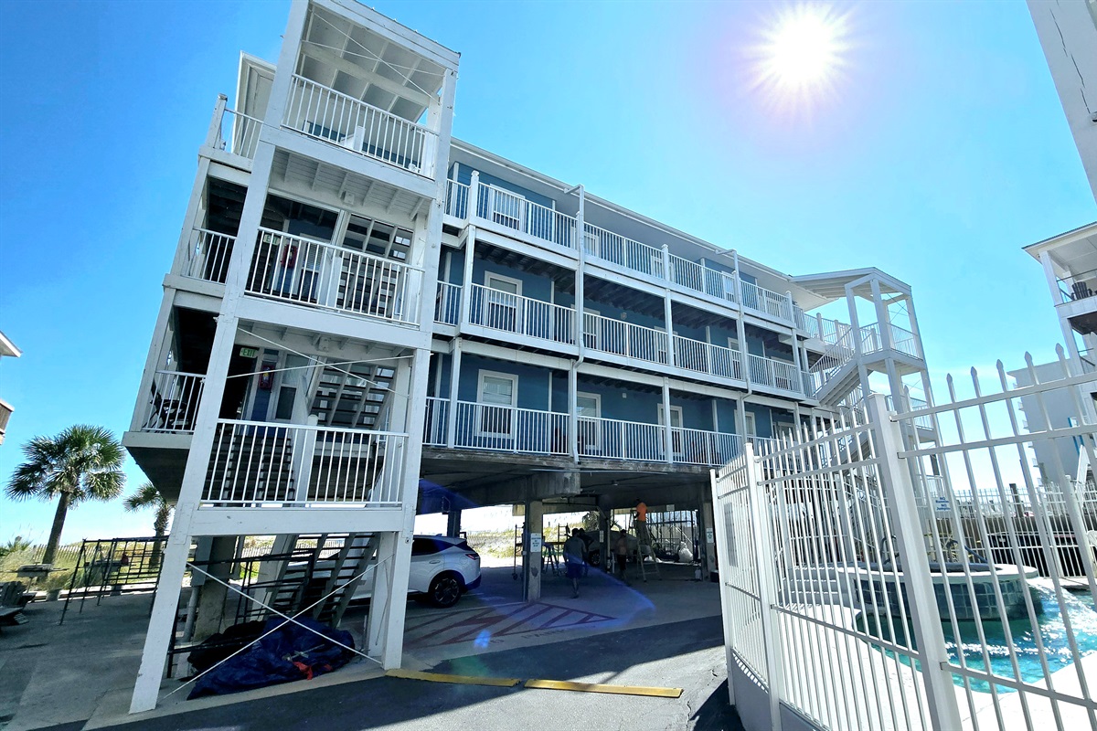 Your car is directly under the first level. Your parking spot is clearly marked 204 (you WILL need a parking pass, $50). We do have three visitor spots, which are first come, first serve. There are beach chairs and umbrellas available for rent too.