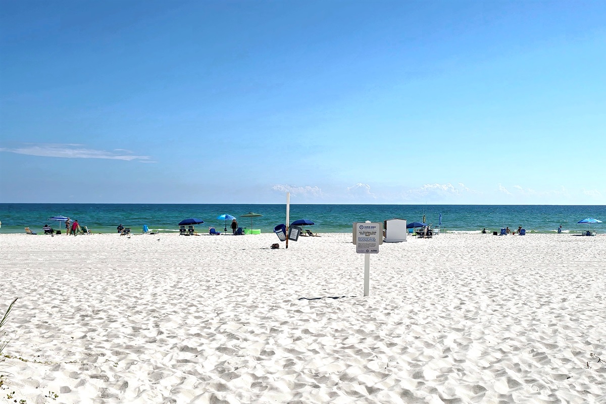 Because there are only 36 units for our 100 feet of beach, you should have plenty of room to spread out. Be sure to remove all your belongings at the end of the day. Gulf Shores has a new motto: "Leave nothing but footprints," and will remove anything left. After enjoying your beautiful sunset and dinner, it is fun to return to the beach with your flashlight—it's time for crabbing!