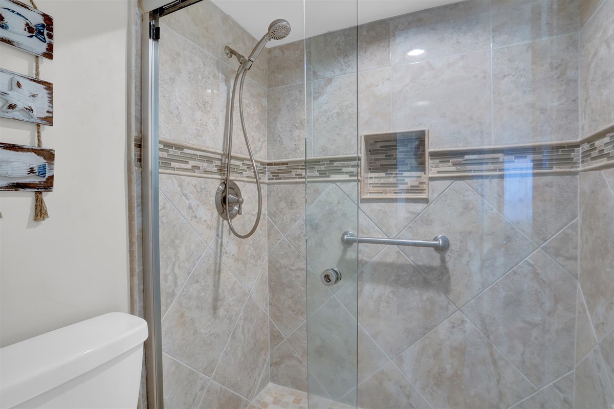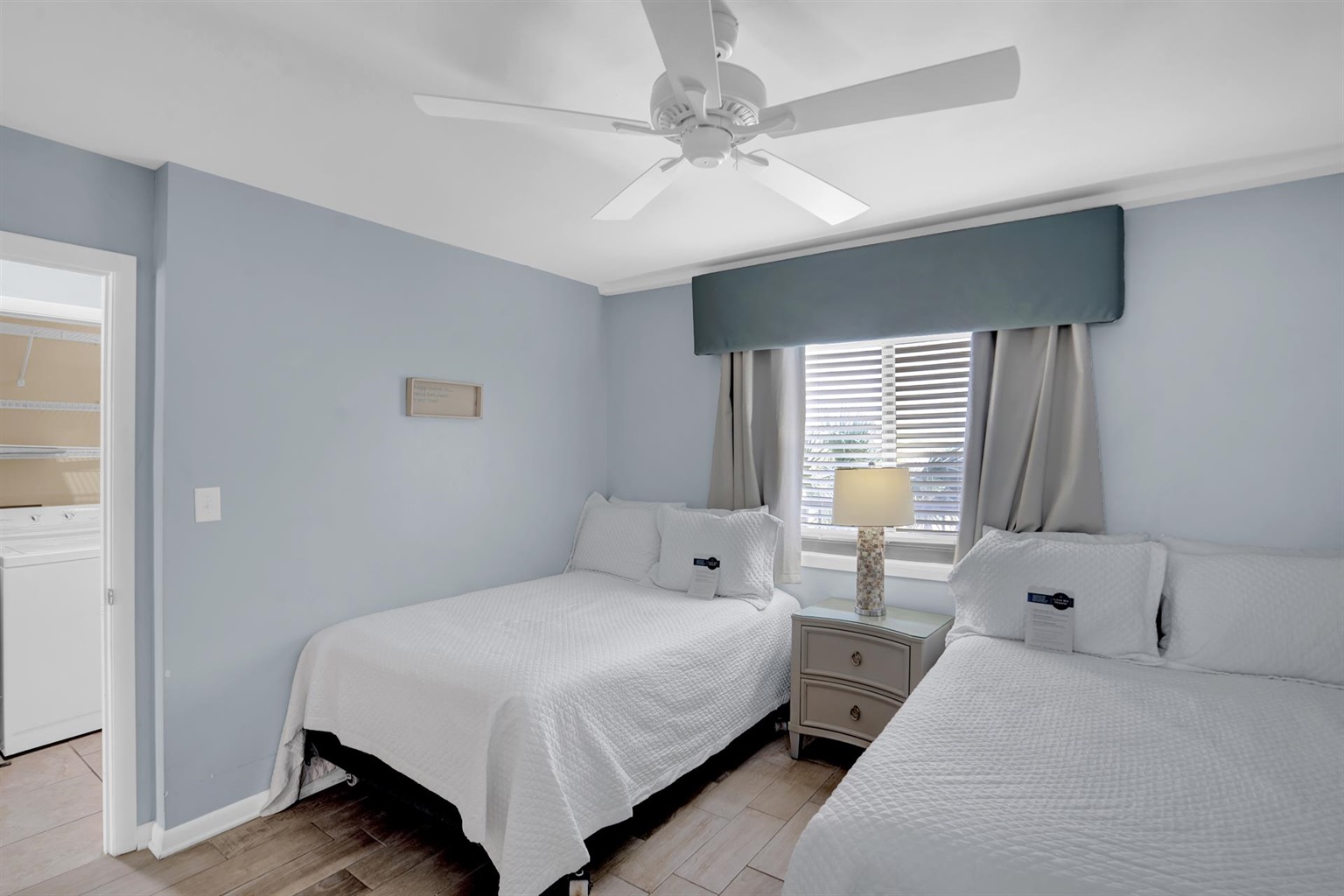 The Primary suite is a luxurious haven featuring a King bed and a newly installed custom walk-in tile shower in the Primary bath. Retreat to this tranquil space for rest and relaxation after a day of beachside adventures. The second bedroom offers two Double beds, providing comfortable accommodations for additional guests or family members.